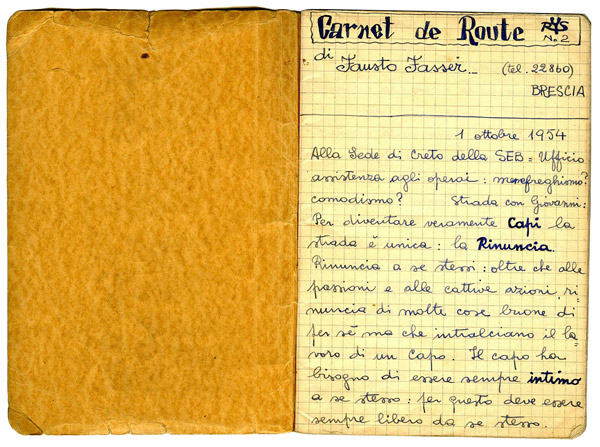 Fauto Fasser rimarrà nell’ASCI e poi nell’AGESCI da esploratore, novizio, rover, capo, capogruppo e responsabile della Formazione Capi, fino al 1994. I diari cui si dedica sono diversi: il Carnet de Route, legato al percorso nello scautismo, un diario quotidiano personale e un diario professionale, sempre quotidiano. Inoltre avvia esperienze di “giornalino” là dove si trova di volta in volta: “La Betoniera” negli anni di cantiere in Sudan, “Le voci del Centro” negli anni in cui collabora alla scuola di musica popolare di Giovanni Ligasacchi, oltre a giornalini della parrocchia o delle diverse realtà dove presta servizio in Associazione. Lascia quindi una grande quantità di disegni, appunti e pagine scritte che in questa occasione ci è piaciuto condividere.