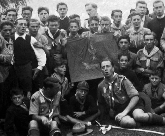 Delle diverse esperienze della sua vita, padre Germano ha citato in ultimo lo scautismo, come la prima e forse quella più "orientatrice", grazie anche alla frequetazione di personalità eccezionali come don Aldo Mauri, Beniamino Casati, don Andrea Ghetti... che certamente hanno influito sulla sua formazione. E allora l'omelia è stata conclusa leggendo a tutta l'assemblea un passaggio dell'ultimo messaggio di BP agli esploratori (riportato nella foto qui accanto) e a seguire la Promessa Scout, nella formula riportata su quel vecchio e ormai logoro tesserino Asci che Peppino ha sempre portato con sè, nel portafogli.